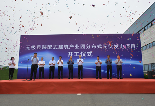 | 5月19日上午,由市政建設(shè)總公司所屬能源投資發(fā)展有限公司投資建設(shè)的無極縣裝配式建筑產(chǎn)業(yè)園分布式光伏發(fā)電項目開工建設(shè)。市國資委黨委委員、副主任楊劍,城發(fā)投集團黨委委員、副總經(jīng)理李宗志,市政建設(shè)總公司總經(jīng)理馬瑞山,市住建集團董事長張瑞彬等領(lǐng)導及施工單位、監(jiān)理單位代表出席開工儀式。李宗志同志宣布項目開工。